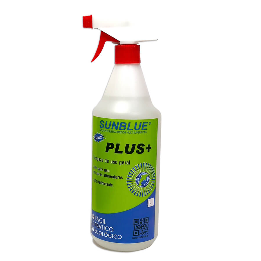 Modo de aplicação: SUNBLUE PLUS+ pode ser diluído, consoante o grau de sujidade, aplicado manualmente por pulverização e removido com água ou pano húmido.